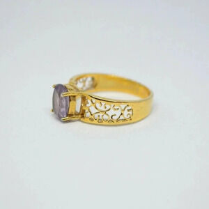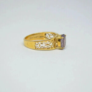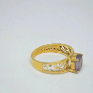 Lind Purple Glass Rhinestone Openwork 14kt Gold Plated HGE Ring Size 11 Slight band wear needs cleaning 10 by 8mm