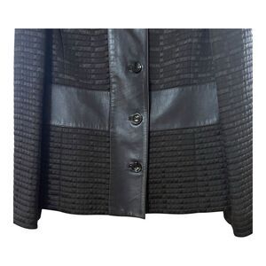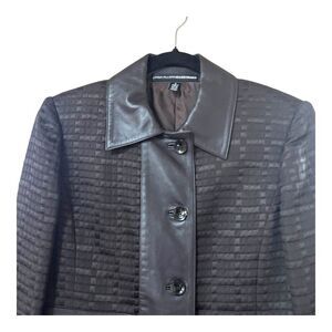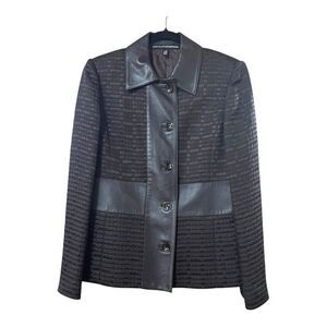 Linda Allard Ellen Tracey Womens Size 6 Brown Textured Leather Trim Jacket
