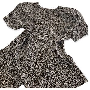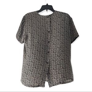 Linda Allard Ellen Tracy 100% Silk Black and White Pattern Short Sleeve Blouse