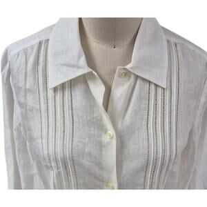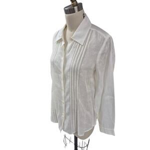 Linda Allard Ellen Tracy 100% White Linen Button Down Shirt Sz 6 Small NWT $245