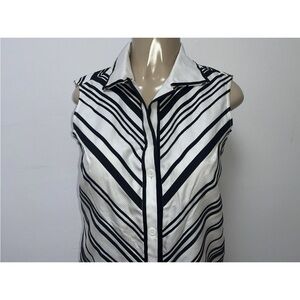 Linda Allard Ellen Tracy Black White Sleeveless Button Down Top Size 4 Cotton