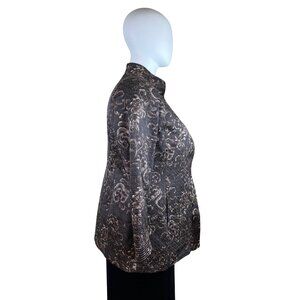 Linda Allard Ellen Tracy Brown & Gold Floral Print Open-Front Jacket Sz 16