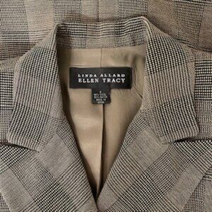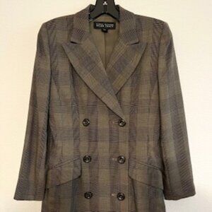 Linda Allard Ellen Tracy Brown Plaid Double Breasted Wool Blend Dress Sz 2