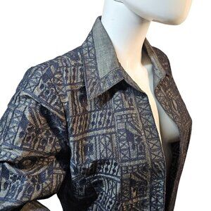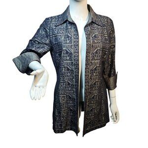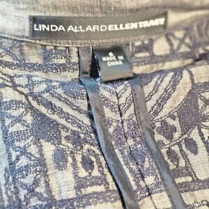Linda Allard Ellen Tracy Embroider Open Jacket Womens S Navy on Gray Linen Blend