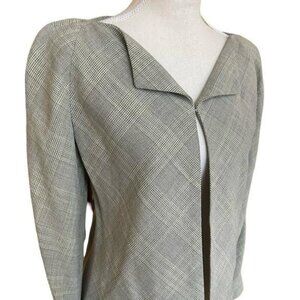 Linda Allard Ellen Tracy NWT Wool‑Linen Blend Green & Cream Plaid Hook‑Front Top
