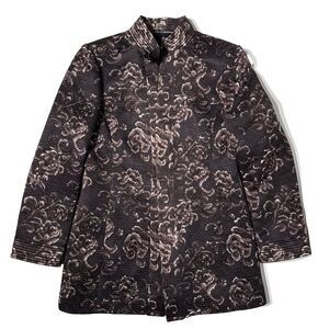 Linda Allard Ellen Tracy Silk Blend Plum Brown Quilted Tunic Style Jacket Size 8