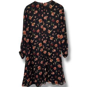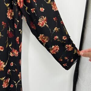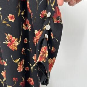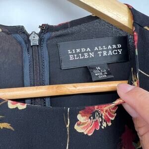 Linda Allard Ellen Tracy Silk Floral Black Midi Sheath Dress Party Cocktail 14