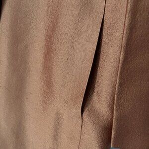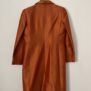 Linda Allard Ellen Tracy Silk Rust Coat. This 100% silk jacket has 2 side pockets and notched sleeves with a semi mandarin collar. Excellent condition. Cleaned and ready to go