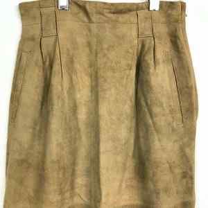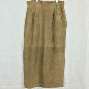 Linda Allard Ellen Tracy Skirt Women 2P Petite Brown Suede Leather Straight Midi