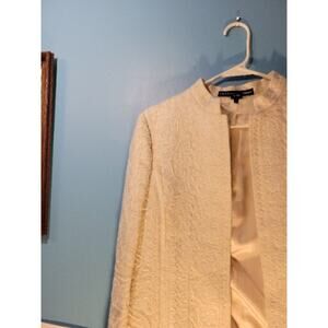 Linda Allard Ellen Tracy White Linen Embroidered Womens Blazer Jacket Size 8