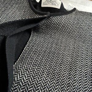 Elevate your layering game with this Linda Allard for Ellen Tracy women's tunic cardigan sweater. Featuring a timeless black herringbone knit and a relaxed yet polished silhouette, this piece blends comfort with designer sophistication.