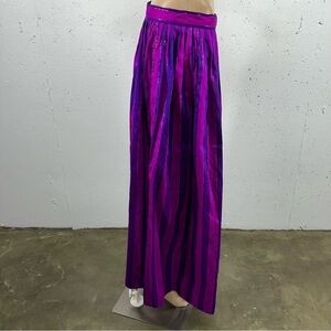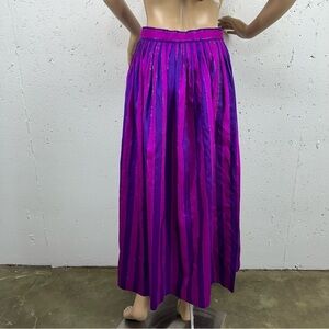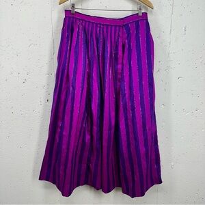 Linda Allard Ellen Tracy Women’s size 4 Purple & Fuchsia Gold Threading Striped Silk Pleated Wrap Midi Skirt in good preowned condition.