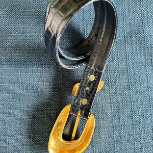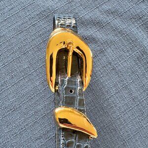 Linda Allard for Ellen Tracy Snakeskin Leather Belt with Gold Buckle