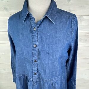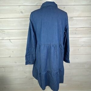 Linda Anderson Blue denim collared long sleeve button front pheasant dress
