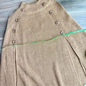 Keywords/Tags: layering, versatile piece, chic touch, elegant tan poncho sweater, fall layering piece, cape sweater, neutral wardrobe, cozy minimalist, autumn outfit essential, elegant knitwear, classic style, chic poncho alternative, transitional layering, cottagecore, elevated casual, soft neutral tones, boho cozy, weekend layering look, warm and stylish