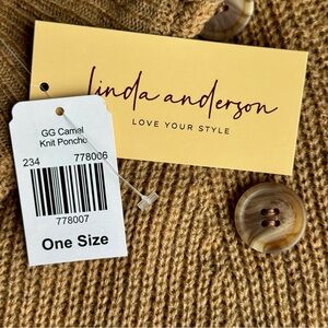Linda Anderson Button-Side Knit Cape Sweater Poncho – Camel Brown