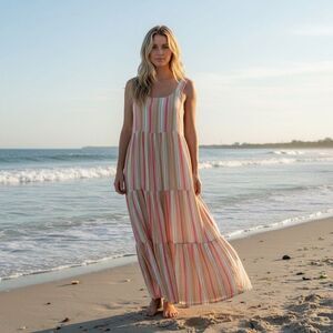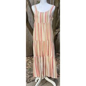 Linda Anderson Sun Dress Empire Waist Tiered Sz M Flowy Smocked Gauze Metallic