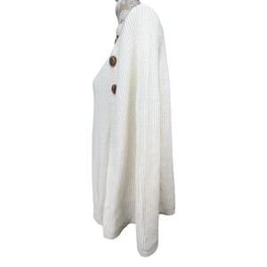 - Style: Loose-fit, high turtleneck poncho with shoulder button details
