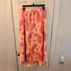 Gently used Women's Vintage 1990's Linda Bertozzi Light Pink Paisley Maxi Skirt. Women's Size 2.