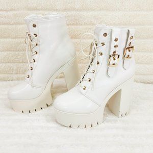 Linda Cream Off White Light Weight Chunky Platform Heel Ankle Boots