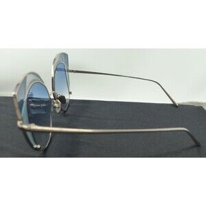 Linda Farrow 856 C7 Oversized Cat Eye Sunglasses Silver And Blue Titanium Frame NEW