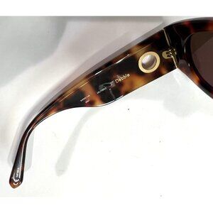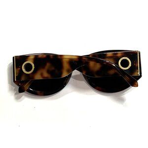 Description from retailer: Formed from rich tortoise shell acetate these sculpted sunglasses from the LINDA FARROW collection are hand polished for a glossy finish. The rounded D-frame style features a gold-plated titanium eyelet set into the temple monogrammed with 'London 1970' to mark the founding of the brand.