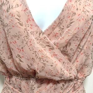 Featuring a floral pattern, backless design, sheer lace detailing, and a deep cleavage, this dress is sure to turn heads.