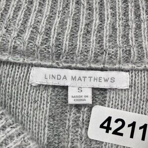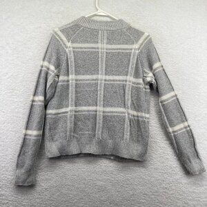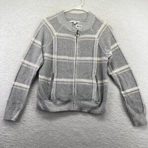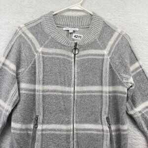 Linda Mathews Womens Front Zip Cardigan Size Small Gray White Check Pockets