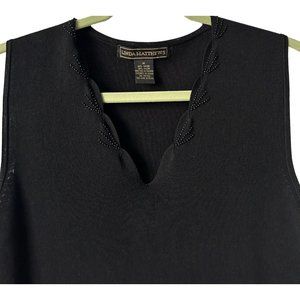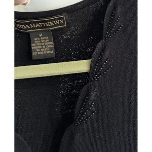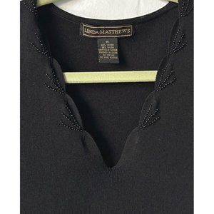 Linda Matthews Women's Black Beaded Trim Sleeveless Top Size Medium