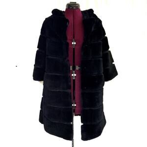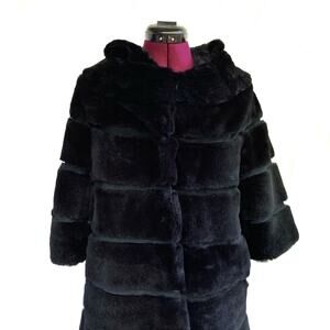 black rabbit fur coat, Linda Richards luxury outerwear, genuine rabbit fur jacket, women’s fur coat size medium, boutique fur coat, mob wife trend coat, quiet luxury winter coat, Max Mara style fur, Italian street style coat, evening fur coat, black satin lined fur, long fur coat womens, holiday party coat, luxury fall winter fashion, timeless investment coat