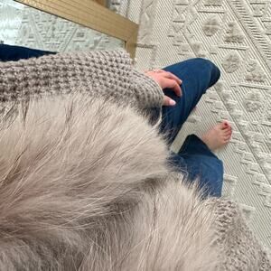Details: Linda Richards New York Genuine Raccoon Fur Knit Shawl Wrap - Size: One Size - Color: Tan - Material: 100% acrylic - Geniune raccoon fur - Features: Luxurious - Shawl - Designer - Shrug 28" length - Retail: $595