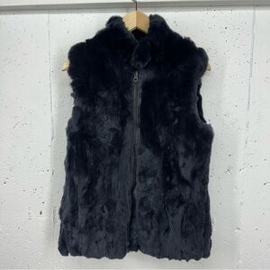 Linda Richards Women’s size XS Rex Black Rabbit Fur Reversible Vest