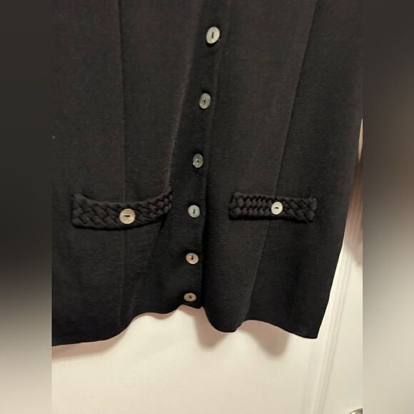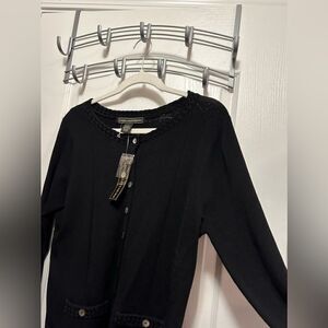 Linda Matthews Button down Black Cardigan sweater Women’s Large classic NWT