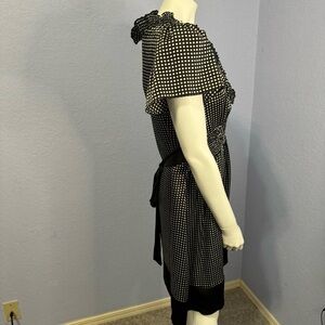 Lindarico Italy Ruffled V-Neck Ruched Silk Blend Tie Mini Dress