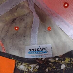 Lindco Equipment Orange & Camo Strapback Hat Embroidered Spell Out Logo