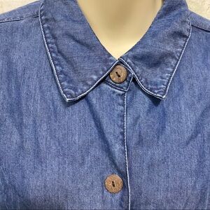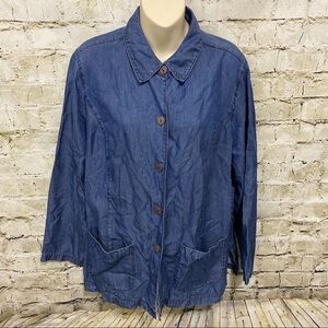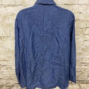 Linden Hill Womens Large Blue Chambray Denim Look Button Up Shirt Jacket With Pockets in good used condition. No stains, tears or rips.