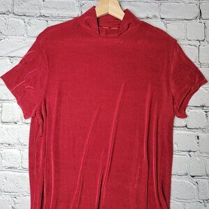 Linden Hill Red Mock Neck Short Sleeve Blouse Size L