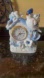 Linden Porcelain Clock Blue White Bird Flowers VTG Wind Up Alarm 1970s Classic
