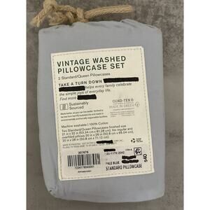 Linden Vintage Washed Pillowcase Std/Queen 100% Cotton Pale Blue Soft