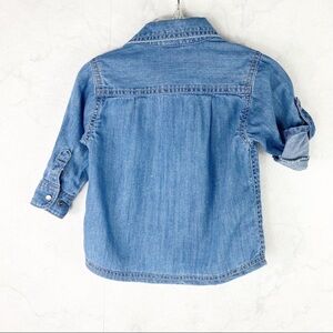 Lindex Classic Blue Jean Button Down Top. Long Sleeves. Folded Collar. Small Front Pocket. Size: 9-12 months. Super Cute & Comfy. No Stains or Rips.