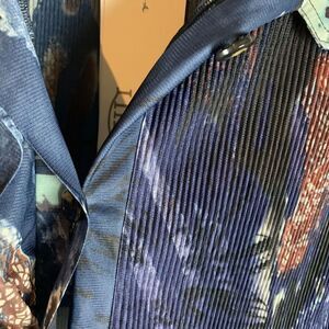 Lindi Tunic Blouse Women's Medium Navy Tropical Print Roll Tab Sleeves Button-Up.