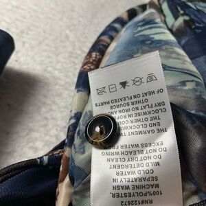 Lindi Tunic Blouse Women's Medium Navy Tropical Print Roll Tab Sleeves Button-Up