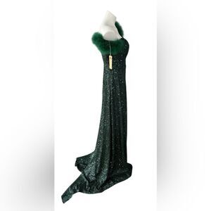 Lindo Noiva Off-The-Shoulder Sequin Evening Dress Green 10 NWT