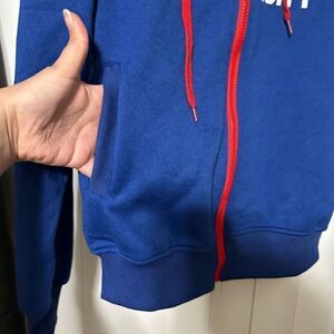 Lindoumao Sweatshirt hoodie, “Stay Future University” blue/red 2 front functiona