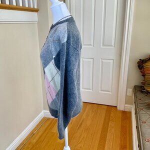 Lindsey Blake Sweater Vintage Argyle Wool Angora Crew Neck Pink Gray Multi (M)