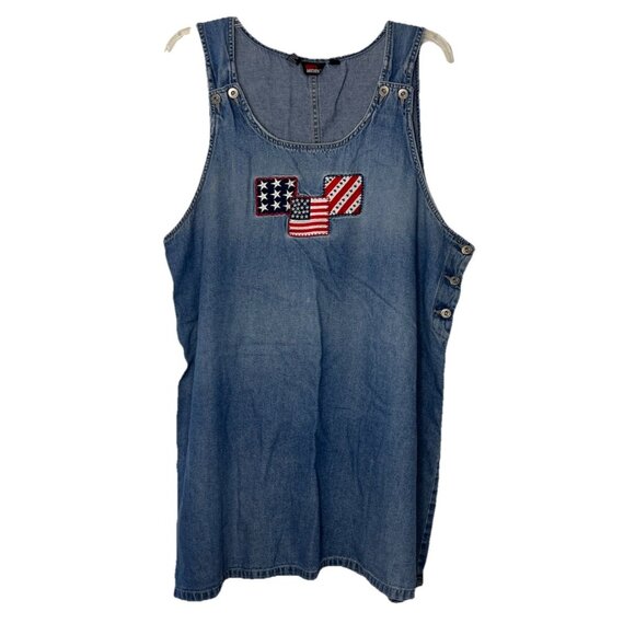 Lindsey Michele Denim Dress Jumper Sz 3 X Patriotic Side Buttons