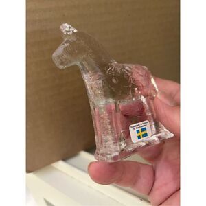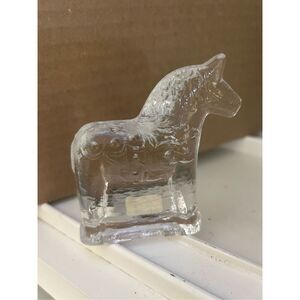LINDSHAMMAR Sweden Art Crystal Clear Glass Dala Horse Paperweight 3.25” Tall.