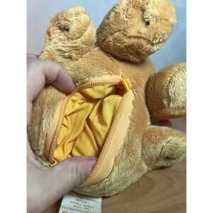 The product is a Lindt Golden Plush Bunny measuring 10 inches(8” body, 2” additional with ears), designed with a zipper under pouch. It features a cute rabbit character in brown color, ideal for toy collectors or as a cuddly companion for children. This specific bunny is a special edition available at the Lindt London store.