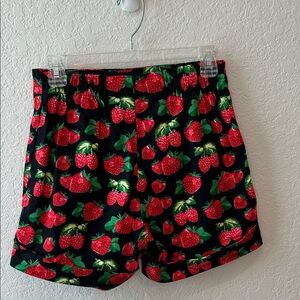 Vibrant high waist shorts featuring a playful strawberry pattern. Ideal for a fun, casual look.