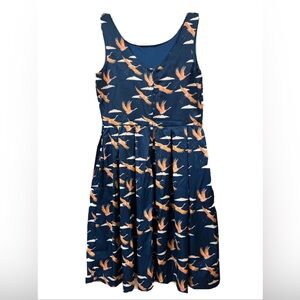 Lindy Bop Lana Dress Blue Cranes UK 18 US 14 Fit & Flair Retro Pinup Rockabilly